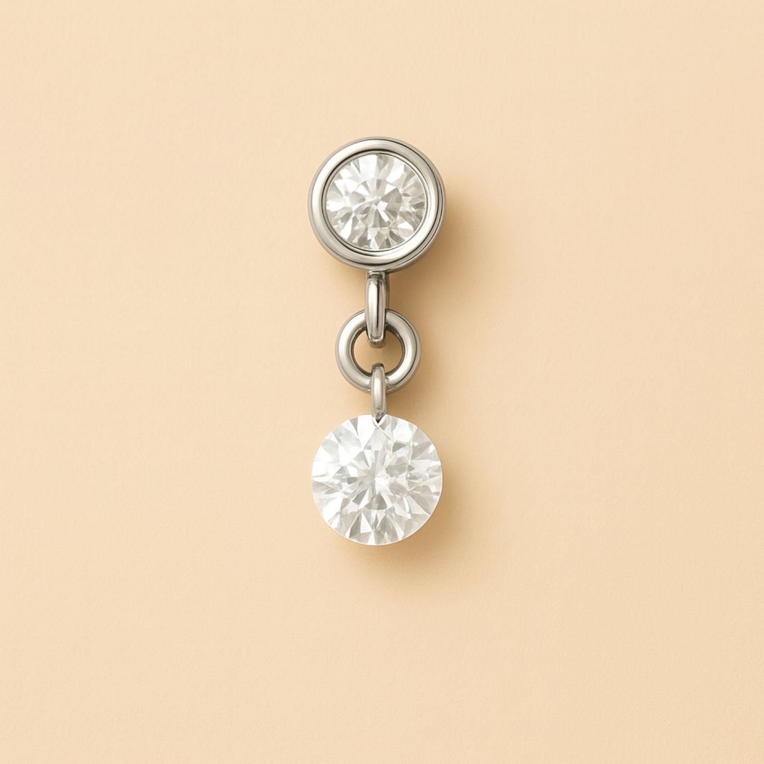 – 3 mm round brilliant-cut sustainably created diamond, drilled and suspended -