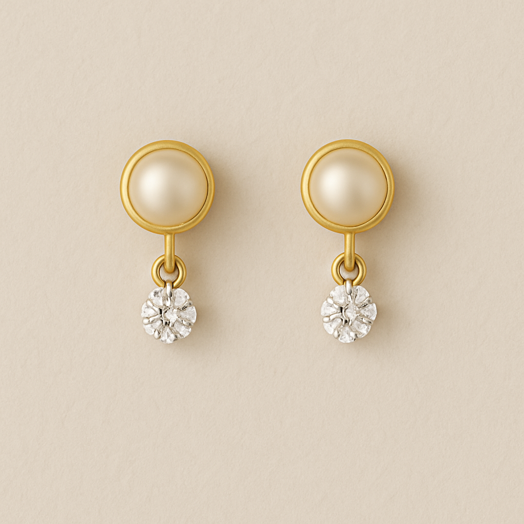The Stardust Grey Pearl and Diamond Drop Earrings explore contrast — between the organic calm of grey freshwater pearls and the precise brilliance of white diamonds. Suspended from minimal silver bezels, the stones and pearls move with subtle fluidity, catching the light in gentle conversation.