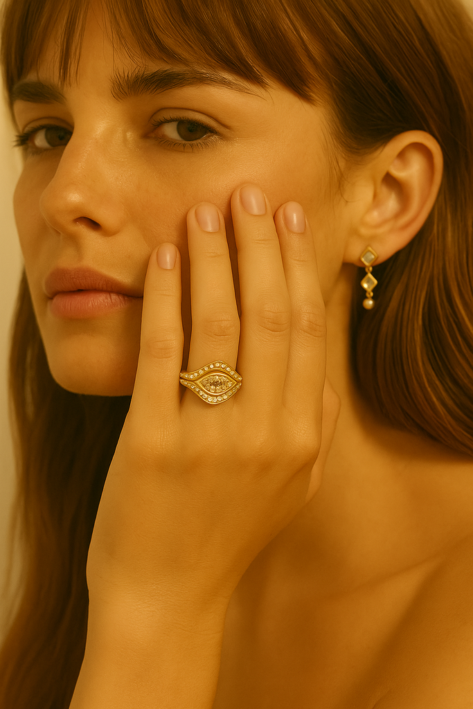 Crafted in solid recycled gold and pavé-set with natural diamonds, Radiance is more than a ring — it’s a reflection of inner brilliance and self-possession. Each piece is made in London, designed to empower women who choose jewellery that means something — not just something that shines.