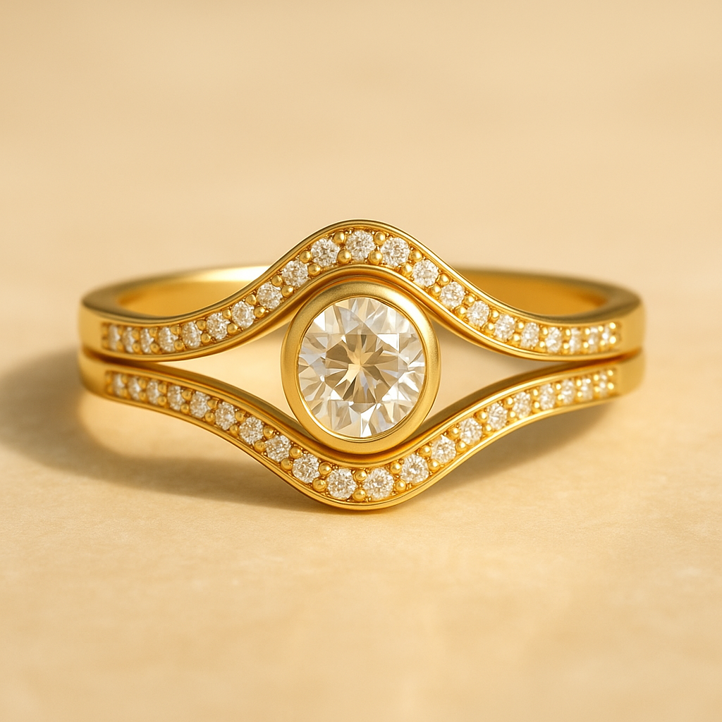 Golden Wave Diamond Duo Ring in 18k Gold