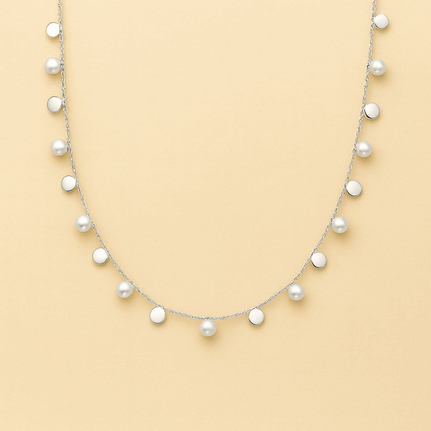The Stardust Pearl Dot Necklace captures the gentle rhythm of pearls and polished silver, dancing in quiet harmony. Each dot reflects a glint of light, each pearl a moment of calm — together forming a constellation that sits gracefully along the collarbone.