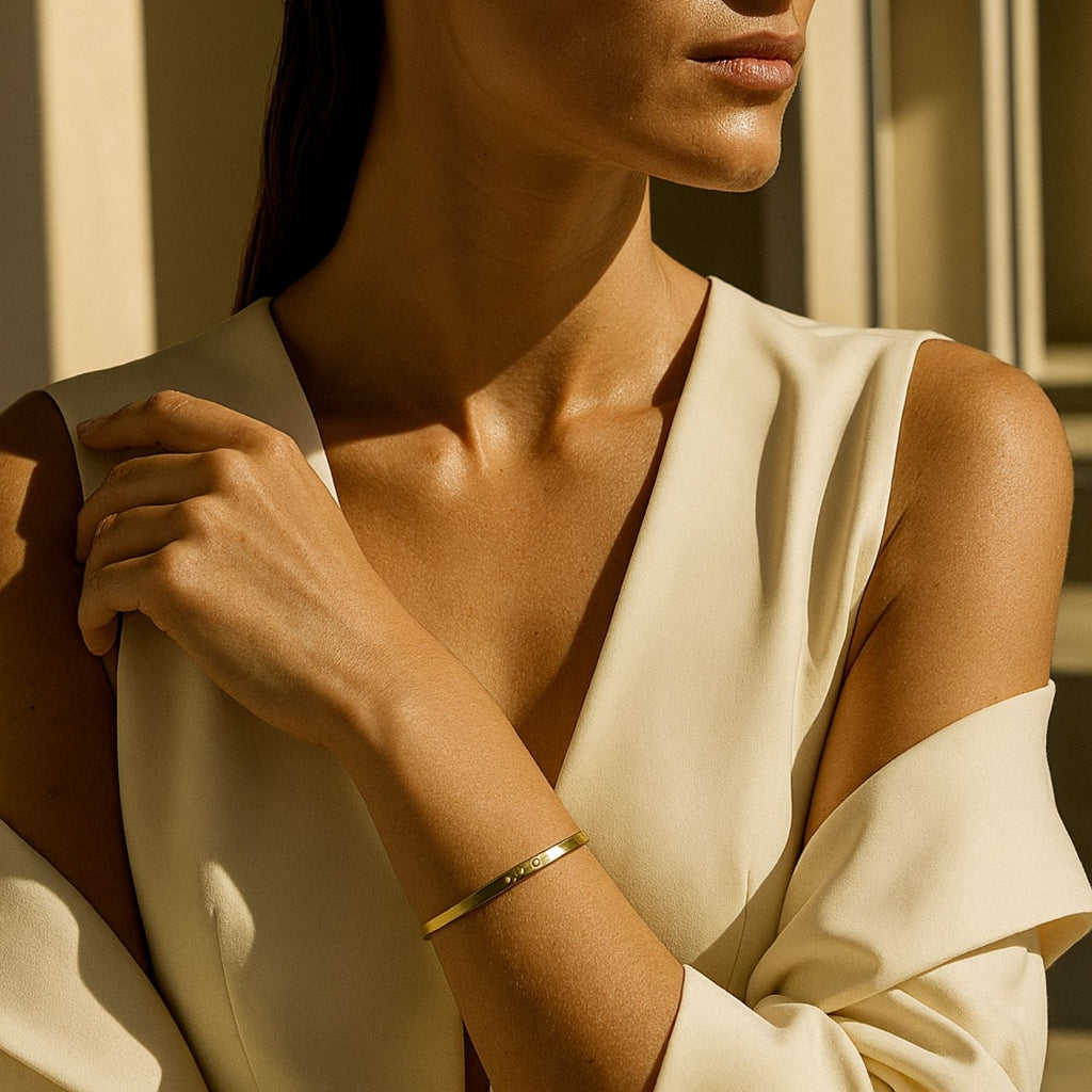 Worn alone, it’s a whisper of light; stacked with other Stardust or Light Line bracelets, it becomes a subtle sculpture of reflection and rhythm. Designed for movement and simplicity, this piece captures the essence of Lily Flo — poetic minimalism with emotional intelligence.