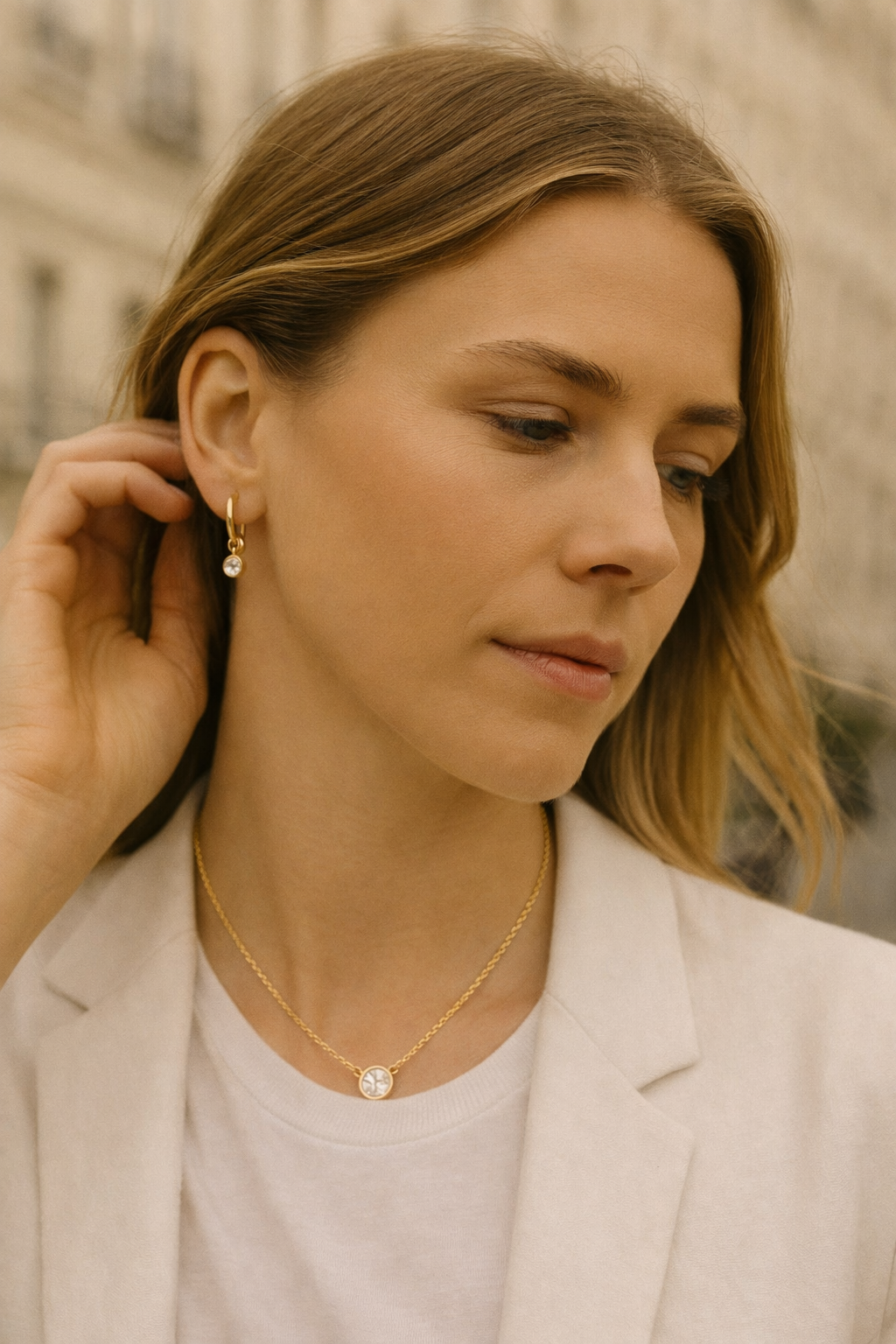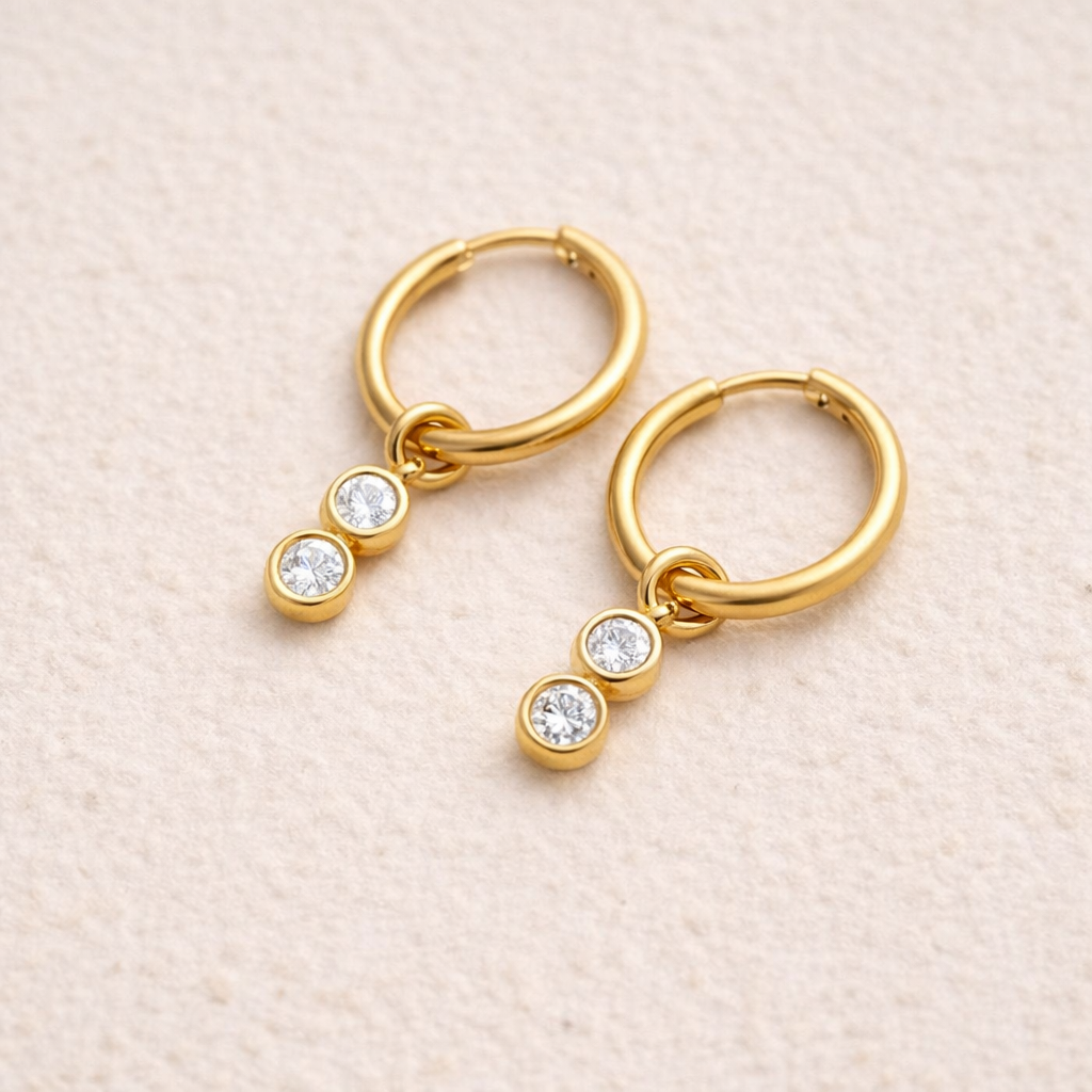 Elegant and understated, the Aurora Double Diamond Hoops are a contemporary twist on a classic form. Featuring two round-cut lab-grown diamonds in sleek bezel settings, they dangle softly from polished gold hoops with a post and butterfly. Ideal for everyday wear with a refined architectural edge.