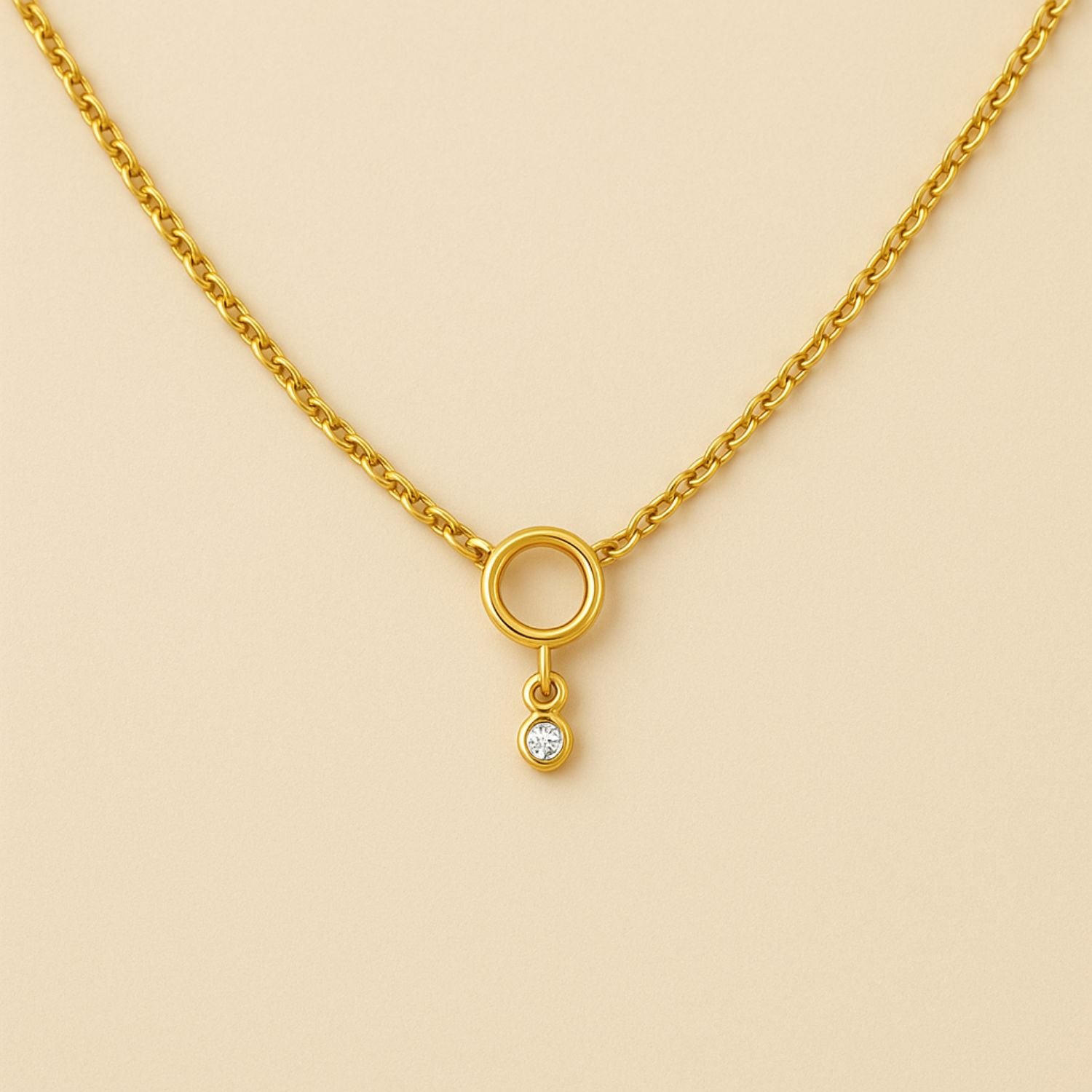 A delicate yet striking necklace that captures the essence of light and balance. Two natural round brilliant diamonds are bezel-set in 14k solid gold, with the lower stone shaped as a subtle pear-cut drop. The result is a fluid, sculptural design that moves gracefully with you — perfect as an everyday signature or a thoughtful milestone gift.