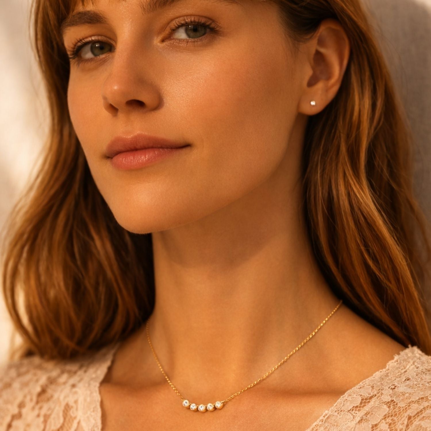 Each diamond catches the light independently, creating a soft rhythm of brilliance that feels modern, effortless, and endlessly wearable.