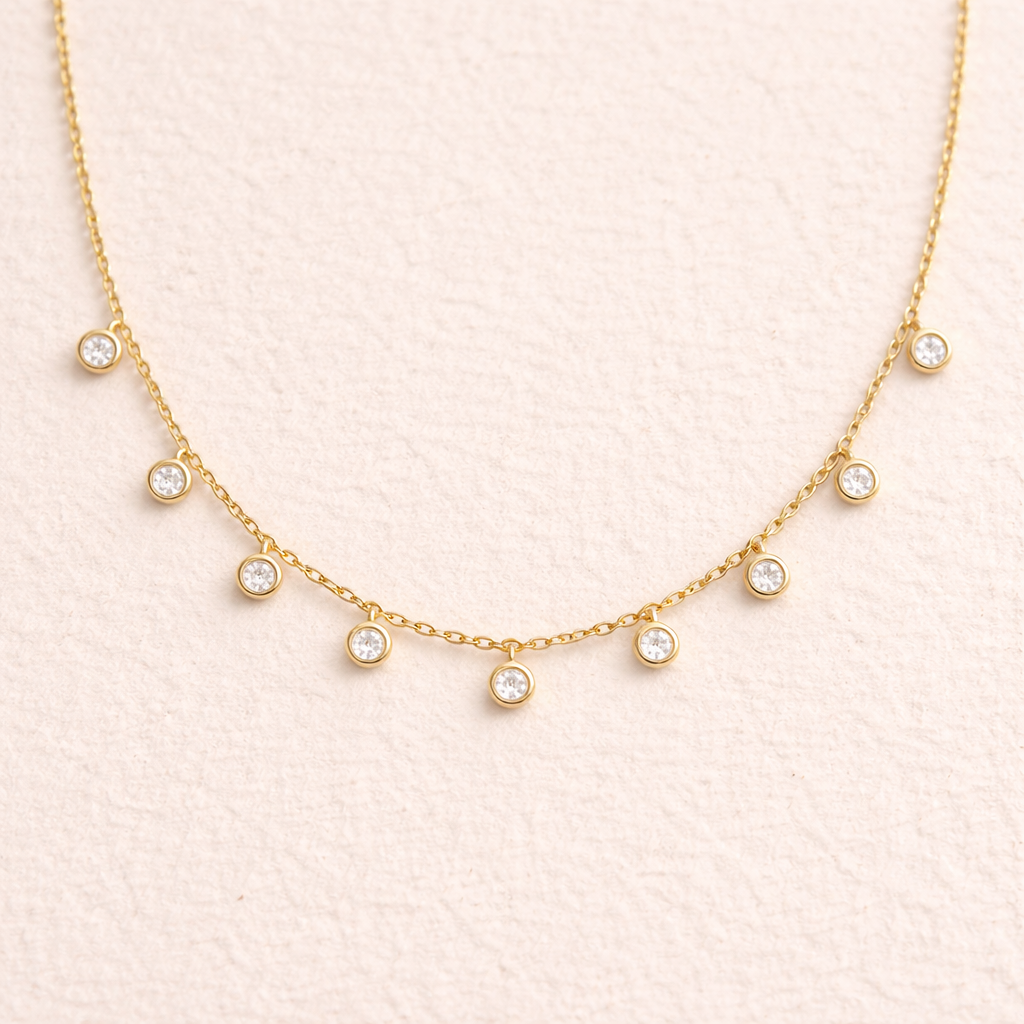 Whether worn alone for subtle elegance or layered with intention, this station necklace celebrates celestial simplicity with architectural precision. Inspired by starlight in motion, Nova evokes the quiet beauty of the cosmos—always glowing, always in orbit.