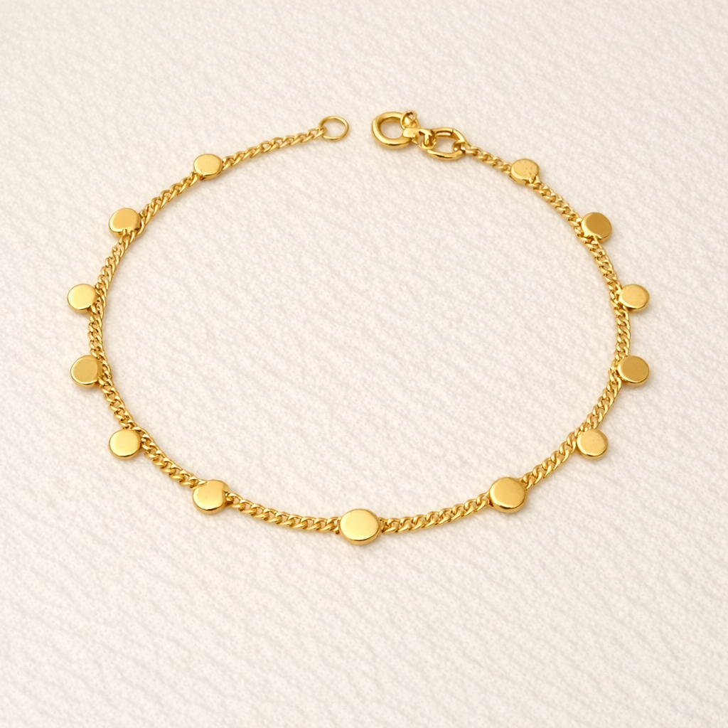The Stardust Beam Bracelet reflects light in its most minimal, modern form. Each polished gold bar gleams softly along a fine chain, creating a serene rhythm that moves gently with the wrist.